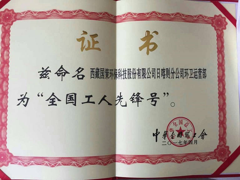 日前,全國(guó)總工會(huì)召開“五一”新聞發(fā)布會(huì), 通報(bào)了一批“2017年全國(guó)工人先鋒號(hào)”。西藏國(guó)策環(huán)??萍脊煞萦邢薰救湛t分公司運(yùn)營(yíng)部全體成員在日常工作中勞心勞力、風(fēng)雨無(wú)阻、踐行無(wú)私奉獻(xiàn)的城市“美容師”精神,被授予“2017年全國(guó)工人先鋒號(hào)”,是我司首獲此殊榮。