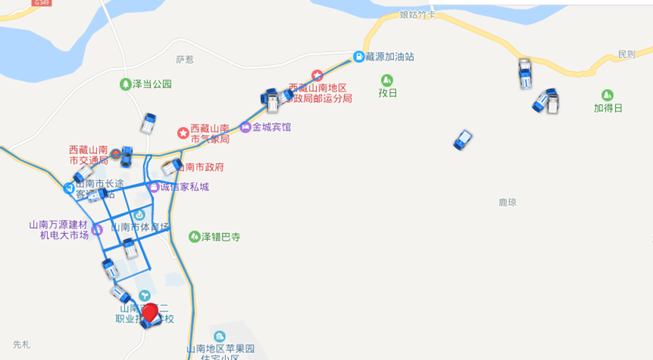 圖為山南市國策環(huán)保環(huán)保系統(tǒng)中車輛作業(yè)路線概況