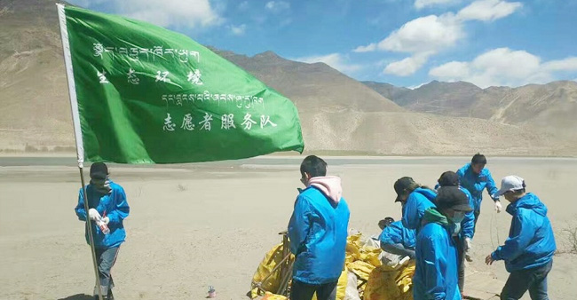 山南市團委組織青年志愿者前往雅江河畔清理河床垃圾