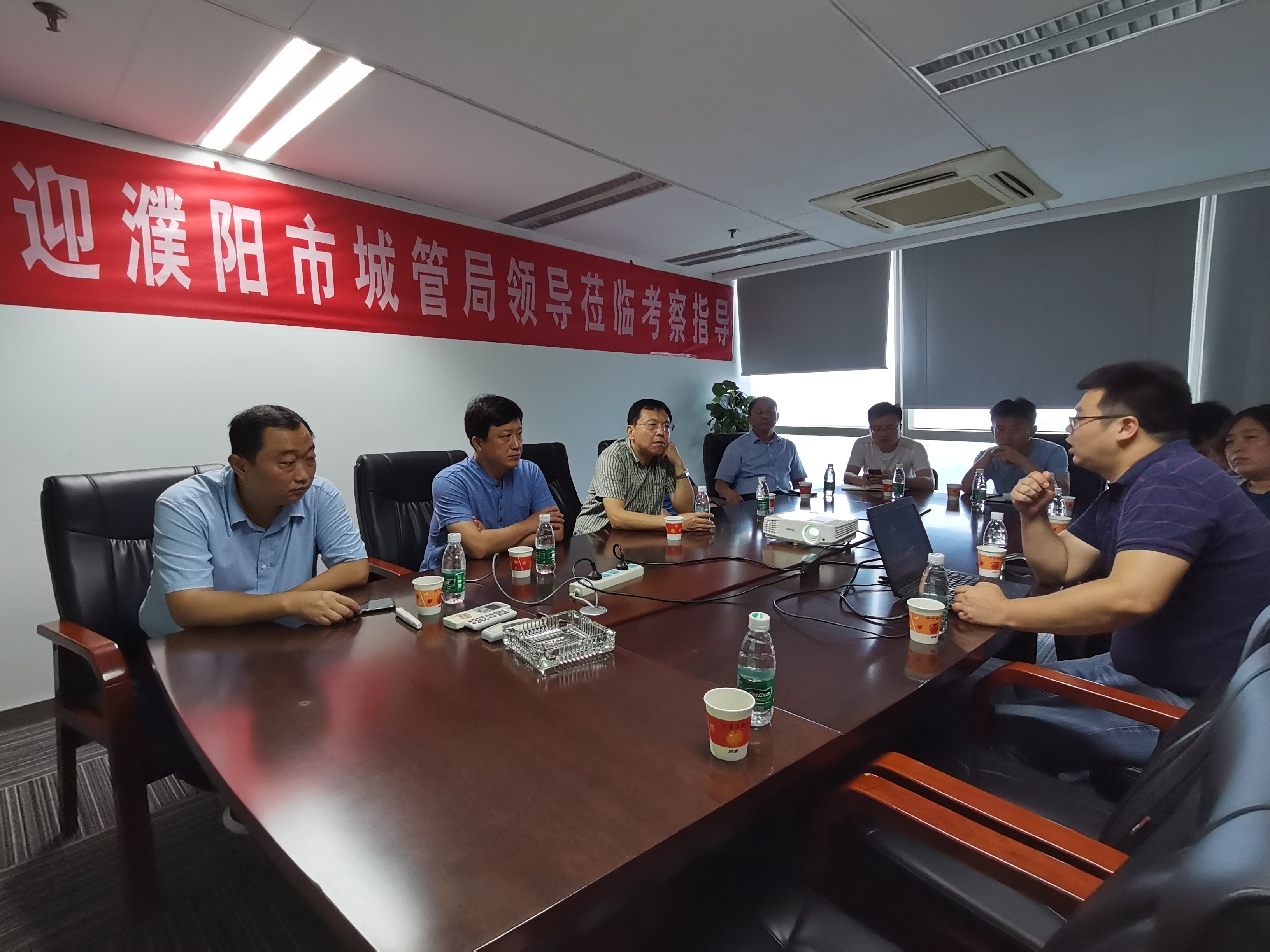 近日,河南濮陽市緊跟智慧環(huán)保時(shí)代的步伐,為推進(jìn)城市環(huán)境衛(wèi)生管理工作,該市城管局考察團(tuán)赴國策環(huán)保進(jìn)行考察交流,雙方對(duì)城市環(huán)境衛(wèi)生綜合管理問題進(jìn)行了探討。