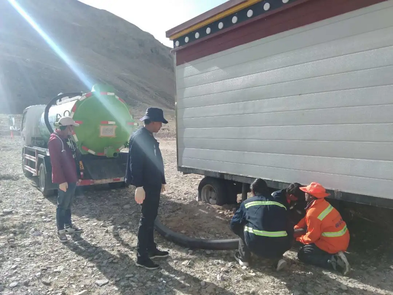 每隔一段時(shí)間,國(guó)策環(huán)保相關(guān)工作人員便會(huì)定期對(duì)這16個(gè)公廁的排泄物進(jìn)行清理,能原地處理的便用吸污車進(jìn)行現(xiàn)場(chǎng)處理,達(dá)到排放標(biāo)準(zhǔn)后排放到附近河里,不能現(xiàn)場(chǎng)進(jìn)行處理的則會(huì)將其運(yùn)送到定日縣垃圾填埋場(chǎng)進(jìn)行填埋處理。