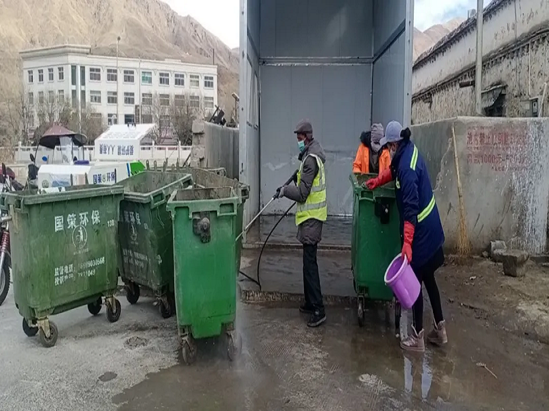 早上八點(diǎn)的山南市城區(qū)道路上空曠安靜,車輛和行人寥寥無幾。國策環(huán)保一線環(huán)衛(wèi)工人正在對所屬轄區(qū)內(nèi)的生活垃圾進(jìn)行清運(yùn),并對所經(jīng)過的重要路段、公交站、垃圾回收點(diǎn)、公廁等噴灑消毒液。