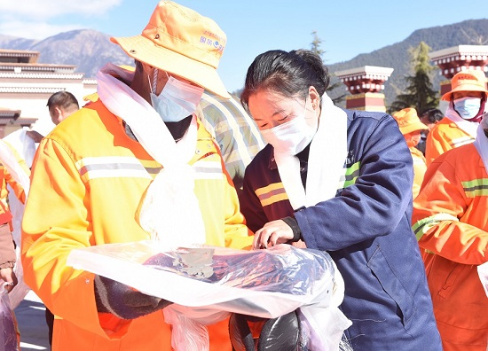 1月7日,為表達(dá)對(duì)國策一線環(huán)衛(wèi)工人的關(guān)懷和祝福,林芝市慈善總會(huì)在工布公園工布廣場(chǎng)開展了“寒冬送溫暖 致敬城市美容師”送冬衣活動(dòng)。活動(dòng)現(xiàn)場(chǎng),市慈善總會(huì)工作人員為50名環(huán)衛(wèi)工人敬獻(xiàn)哈達(dá),并送上慰問冬衣。
